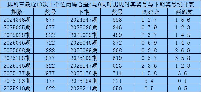 胪列三第2025262期奖号两码合差分析: 百十位合差分析:上期奖号百十位开出87组合,两码合为5,两码差为1,最近10次百十位两码合5与两码差1同期出刻下,其奖号和下期奖号分散为: ![]() 从以上统计不错看出,百十位两码合差5与1同期出现之后其下期两码合差发扬最热的4个分散为:0568,本期百十位两码合差不错参考这四码中的数据。 下期开出最热的四码分散为:1269,本期看重这四码包含百十位中的奖号。 百个位合差分析:上期奖号百个位开出87组合,两码合为5,两码差为1,最近10次百个位两码合5与两码差1同期出刻下,其奖号和下期奖号分散为: ![]() 从以上统计不错看出,百个位两码合差5与1同期出现之后其下期两码合差发扬最热的4个分散为:2356,本期百个位两码合差不错参考这四码中的数据。 下期开出最热的四码分散为:3469,本期看重这四码包含百个位中的奖号。 十个位合差分析:上期奖号十个位开出77组合,两码合为4,两码差为0,最近10次十个位两码合4与两码差0同期出刻下,其奖号和下期奖号分散为: ![]() 从以上统计不错看出,十个位两码合差4与0同期出现之后其下期两码合差发扬最热的4个分散为:0135,本期十个位两码合差不错参考这四码中的数据。 下期开出最热的四码分散为:0123,本期看重这四码包含十个位中的奖号。 ![]() 赢四海第2025262期胪列三推选: 独胆参考4,双胆参考:14 杀一码推选:5 组六复式参考:014789 直选5码参考:02346*13689*01389 精选15注单注推选:034 046 124 134 146 149 234 246 248 249 347 348 349 468 469 单挑一注直选:419 [扫码下载app,中过数字彩1千万以上的内行皆在这儿!] ![]() |